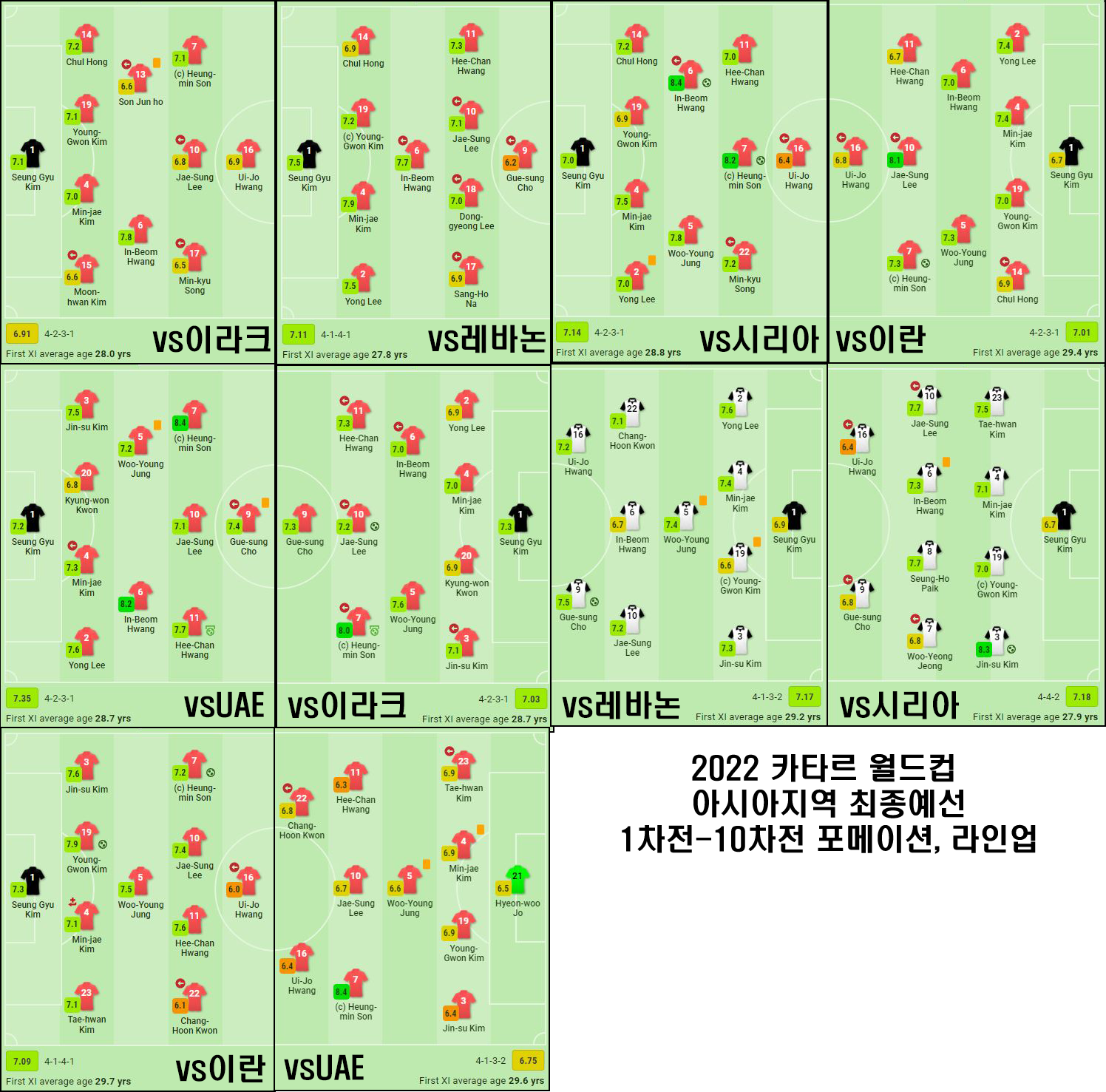 벤투호의 2022년 카타르 월드컵 아시아지역 최종예선으로 보는 포메이션입니다.