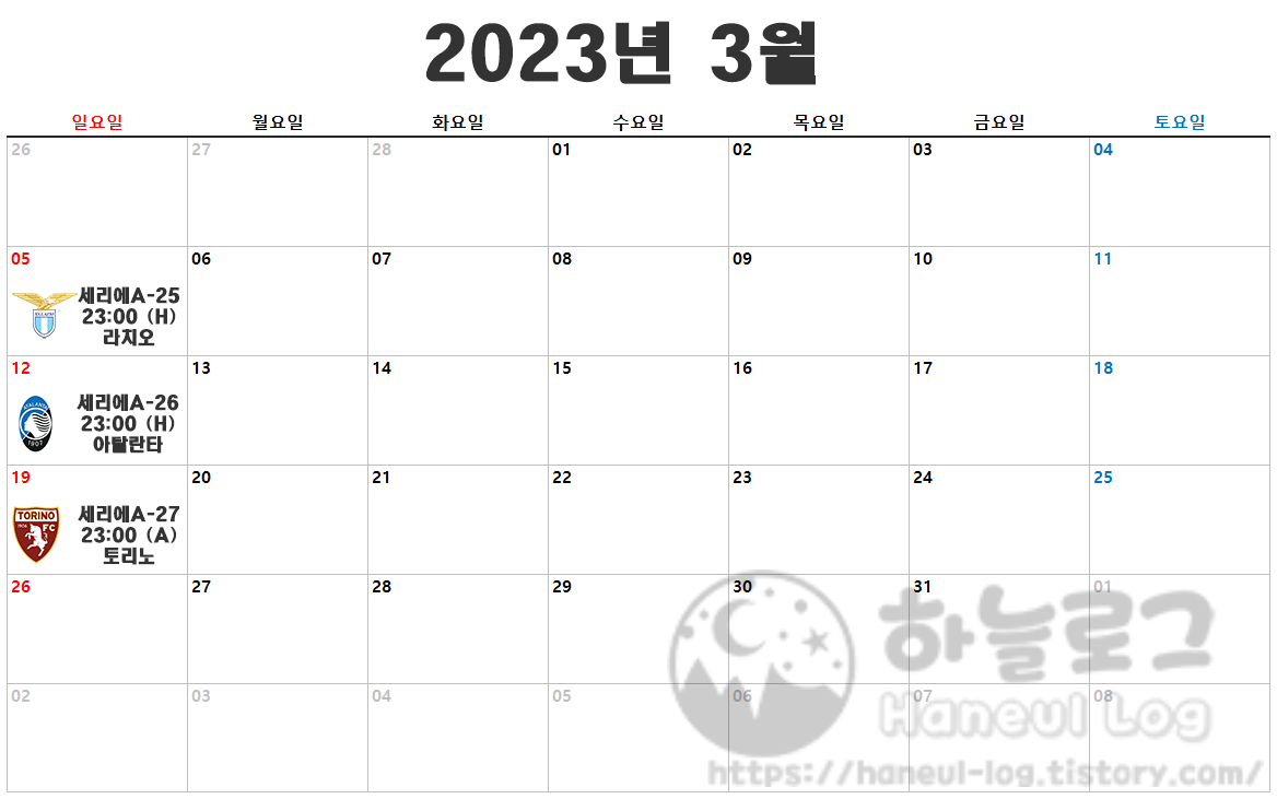 2023년 3월 19일 - 세리에A (27라운드) 토리노 23:00 (A)