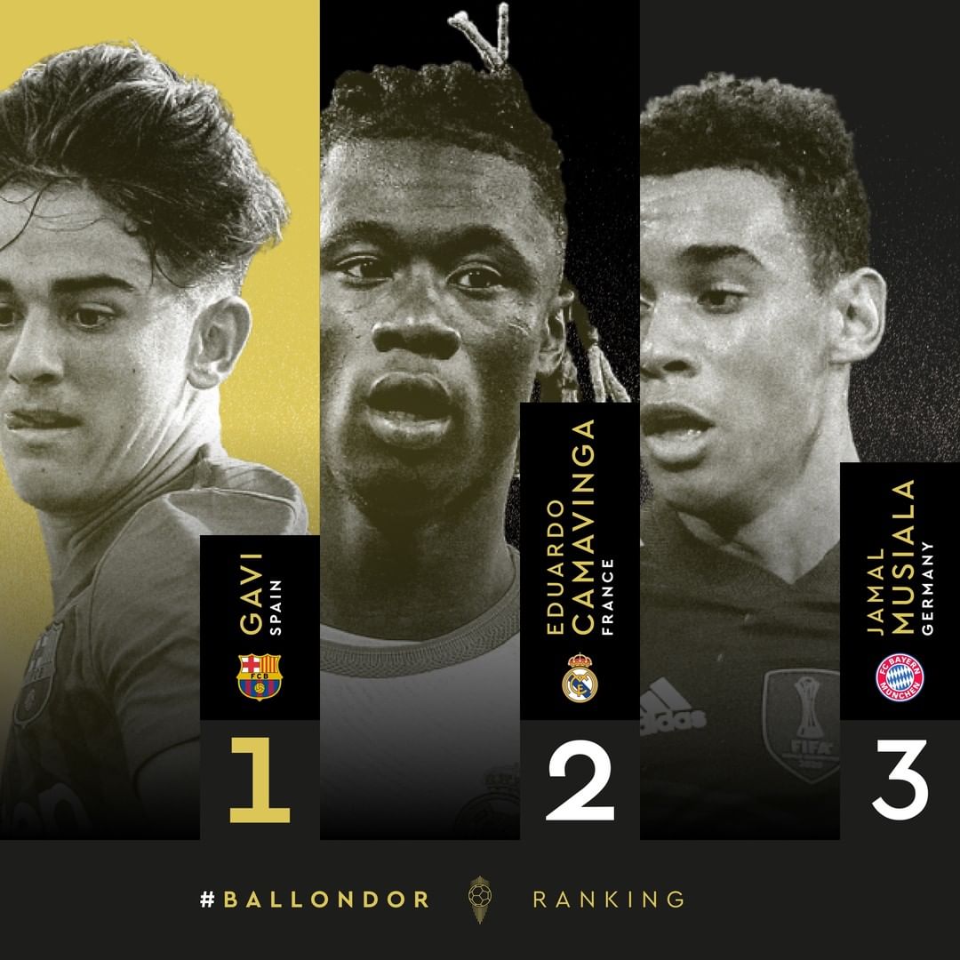 역대 순위로는 2018년에 음바페, 2019년 더리흐트, 2021년에 페드리였습니다.